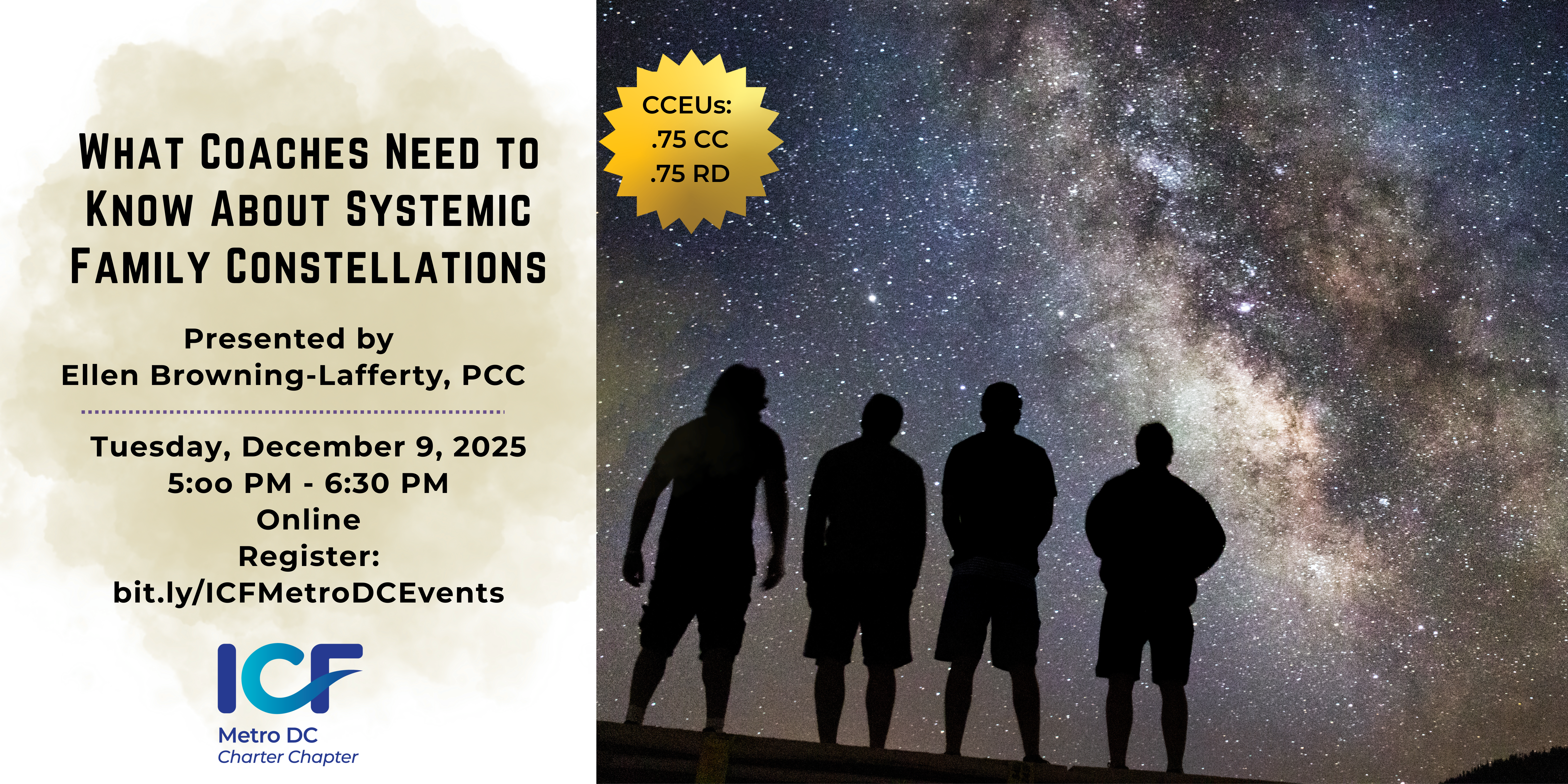 -Identify the basic tenets of Systemic Family Constellation Philosophy and how this knowledge supports coaches in embodying the ICF Core Competencies